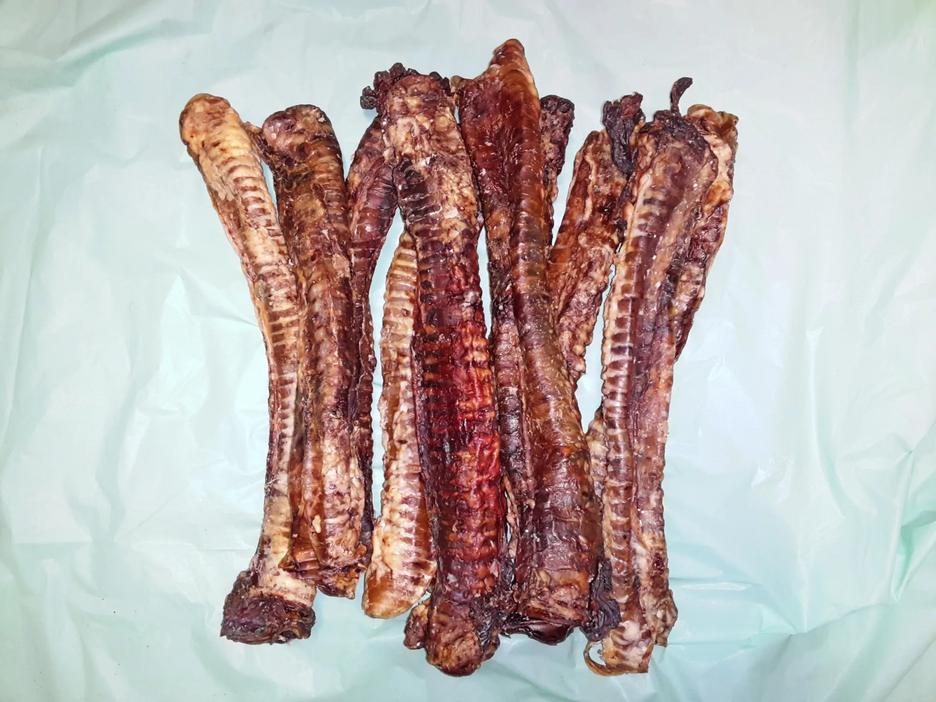 Runderluchtpijp, zoals de naam het al aangeeft, is het de luchtpijp van het rund. Ideale snack voor de grotere hond en bomvol dierlijke eiwitten en chondroitine, hetgeen de aanmaak van gewrichtskapsel bevorderd. Luchtpijpen worden per stuk verkocht en zijn gemiddeld 30 cm lang. Ze kunnen op verzoek op maat worden gesneden. Gelieve dit aan te geven bij de opmerkingen